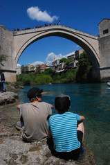 Wir campierten in der Nähe von Mostar auf einem Campingplatz eine Nacht und durften das Auto den ganzen Tag gratis stehen und gingen zu Fuss nach Mostar. Vom Campingplatz ist es etwa eine halbe Stunde zum Laufen. Doch man kommt nicht in die gewünschte Altstadt, sondern in eine ganz gewöhnliche Stadt - ausser, dass viele zerschossene Gebäude verlassen dastehen. Wir gingen etwa 10 bis 20 Minuten in der Stadt bis wir an dem Wash & Dry Laden vorbeikamen und gaben da unsere Wäsche ab. Die Dame dort sagte in gebrochenem Englisch dass wir die Wäsche in 4h oder um 16:00, das wissen wir leider nicht, die Wäsche abholen können. Wir liefen etwa noch mal eine halbe Stunde und kamen an der Altstadt an. Von dort aus suchten wir die alte Brücke namens Stari most. Auf dem Rand dieser Brücke, die etwa 21 Metern hoch ist, stand ein Mann in T-shirt und Badehose und und sammelt Geld. Als wir dann unten an der Brücke standen und dem Mann etwa schon eine Halbestunde zu schauten und hofften ,dass er springen würde, fragten wir einen Mann, der Boottouren machte, und immer da unter dieser Brücke stand, wir fragten den Mann ob der Mann oben auf dieser Brücke noch heute springen würde.. Da sagte der Mann, dass der Brückenspringer 50 Euro sammelt und wenn er das hat springt er einmal von der Brücke. Der Bootsmann sagte, dass der Mann im Sommer manchmal 20-mal pro Tag springe. Das gäbe dann also 1.000 Euro am Tag. Als er dann gesprungen war gingen wir etwas essen. Danach gingen wir zu einer Eisbude und kauften uns ein Eis für alle.